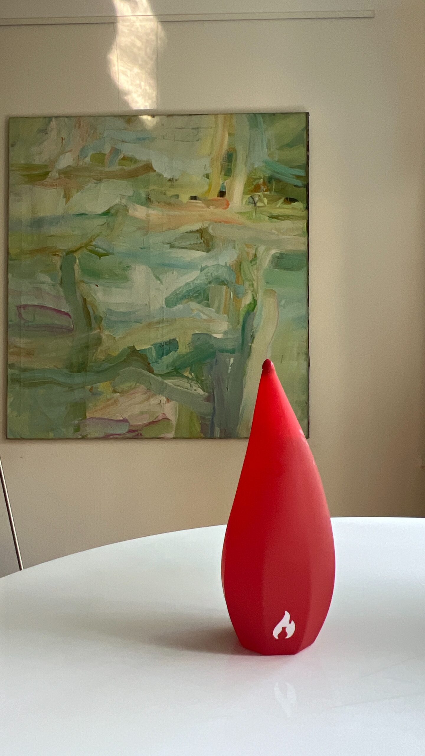 Toen ik over de flame away hoorde, was ik meteen gefascineerd. Ik heb meteen een blauwe én rode besteld. Wat een mooi uitgevoerd product! Alles klopt, de vorm is een midden tussen een vlam en een waterdruppel. Bij de blauwe valt het licht er nog iets mooier door heen waardoor het bijna een lampje wordt. De verpakking is verbazingwekkend eenvoudige voor een glazen object en daarmee ontstaat er geen onnodig afval. Ook fijn.
