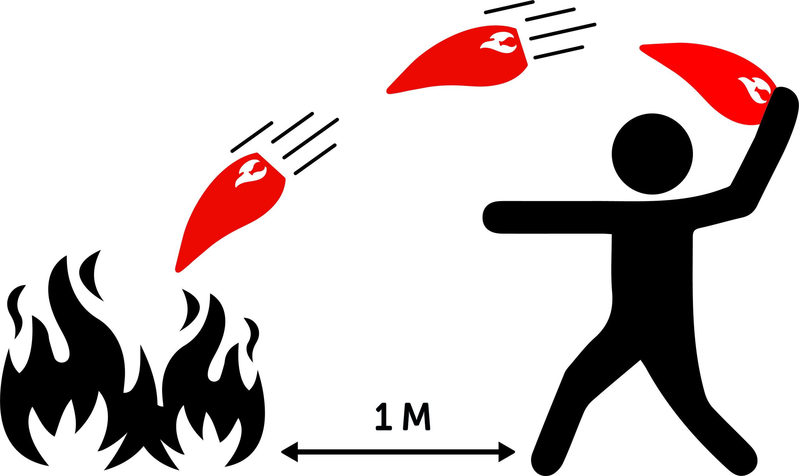 Flame Away is a breakable container filled with a fire-extinguishing solution. When thrown into a fire, the container shatters on impact, instantly dispersing the liquid across the flames.